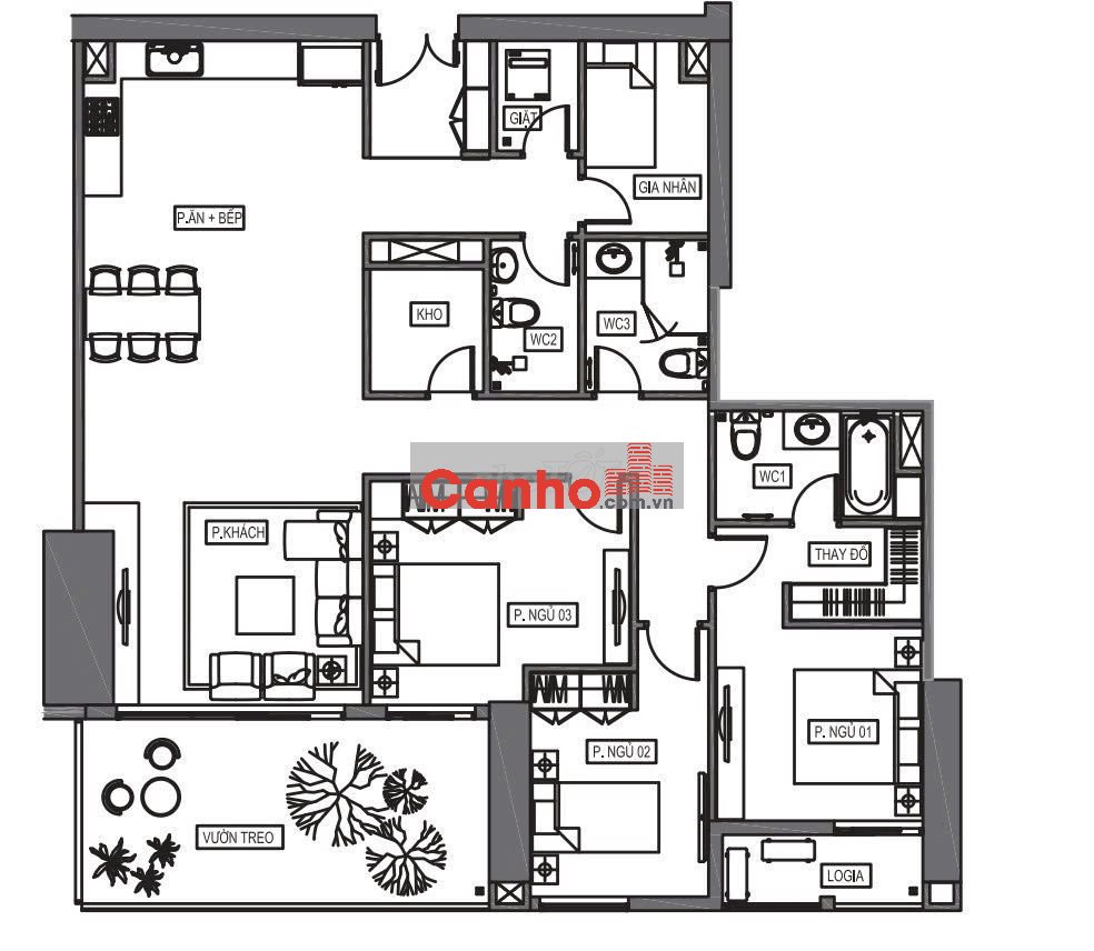 PCăn hộ 154.91m2, 3PN + 1 P. Nhỏ, 2VS, 1. P. Giặt, Hà Đông