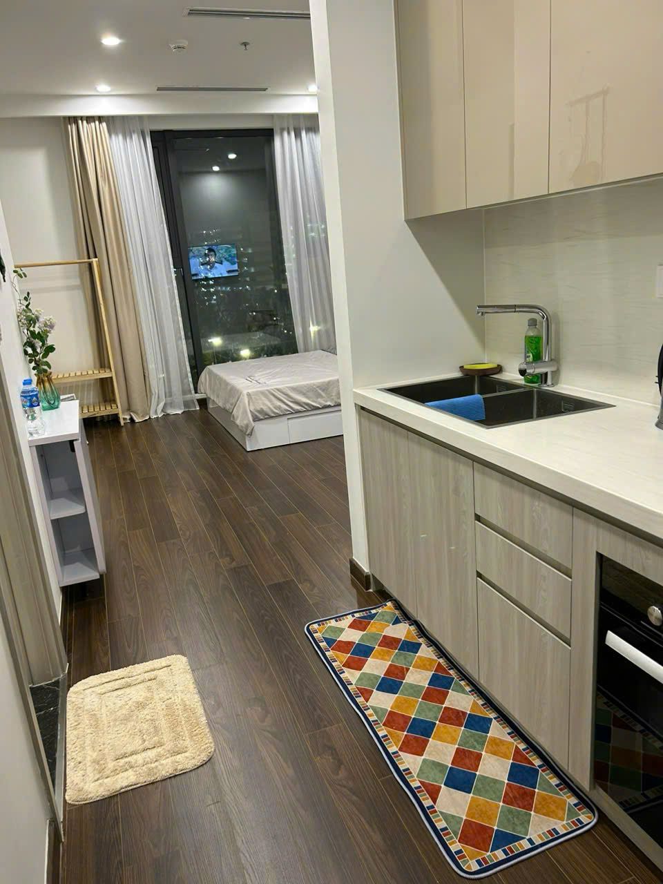 Căn hộ Studio Masteri West Heights, Phường Tây Mỗ, Nam Từ Liêm, Hà Nội, có diện tích 28,5m2, bao gồm PN, bếp và WC, thích hợp cho những ai muốn tìm kiếm không gian sống tiện nghi, dịch vụ cao cấp 5 sao. Nội thất đầy đủ, sẵn sàng cho việc dọn vào ở ngay. Giá cho thuê chỉ 8,0 triệu VND (bao phí chung cư), quá hời cho một căn hộ hiện đại và thoải mái như thế này. Thời gian thuê linh hoạt, tối thiểu 6 tháng, giúp dễ dàng sắp xếp cho kế hoạch sinh sống.