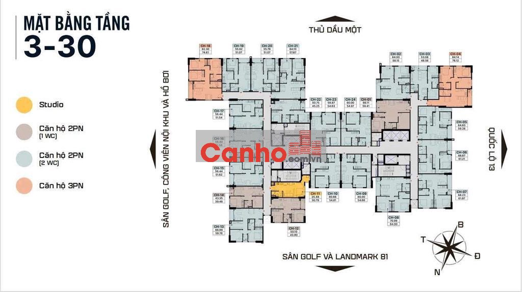 Diện tích đa dạng: 1PN – 3PN