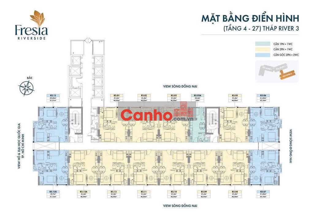 Căn 2PN 1WC - 51,5m2 - Fresia Riverside , Giỏ hàng CDT, Vay 80% đã VAT