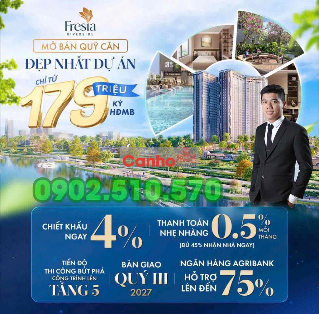 Giỏ hàng CĐT căn hộ Fresia Riverside 1,86tỷ 2pn1wc, ht vay 75%