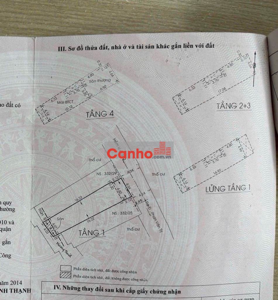 - Diện tích: 4.65m x 20m (Công nhận sổ 83m2 / Diện tích thực 90m2).
