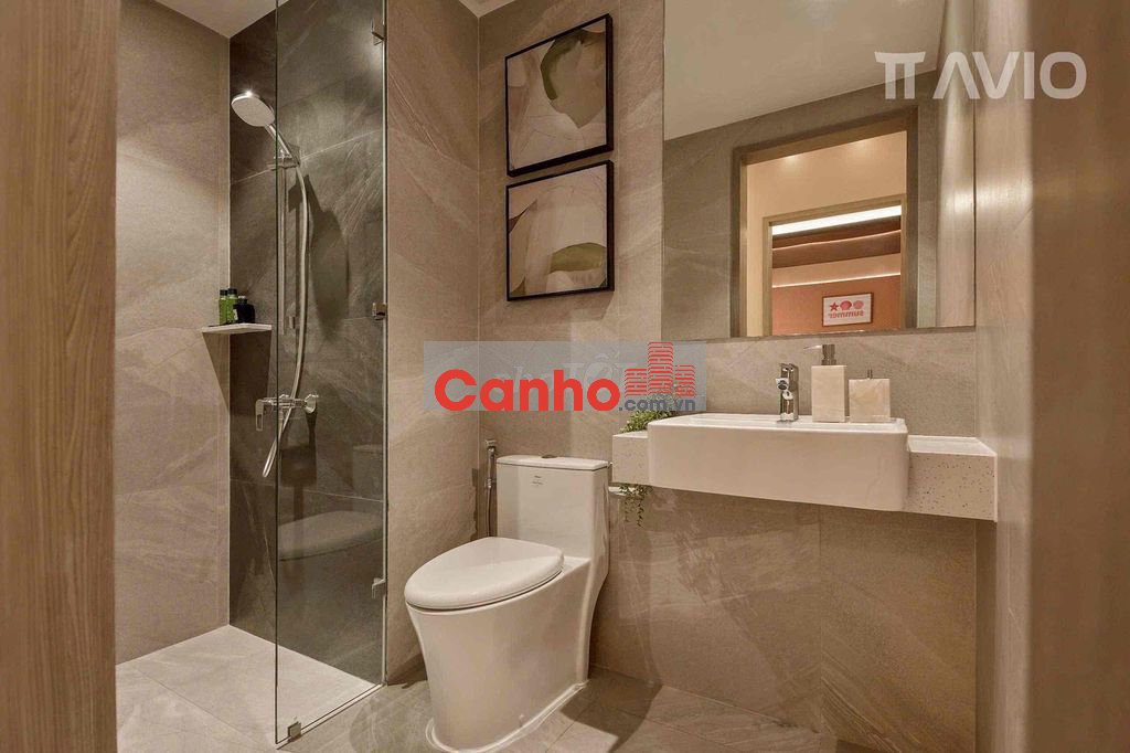 có diện tích 62m², thiết kế hiện đại với 2 phòng ngủ + 2 toilet.