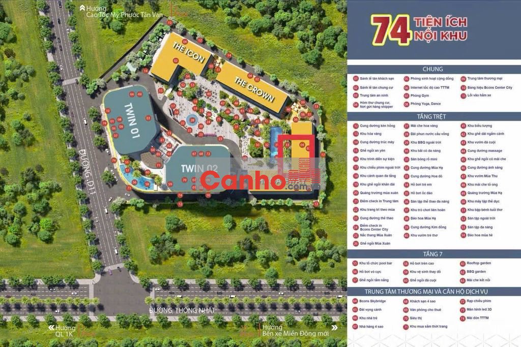 - Dự án Bcons Center City - Thiết kế tháp đôi với dạng căn 1,2,3 PN cao cấp nhất khu Làng Đại học Quốc Gia Thành Phố Hồ Chí Minh.