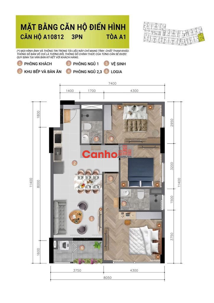 - Loại căn: 3PN (Căn góc)