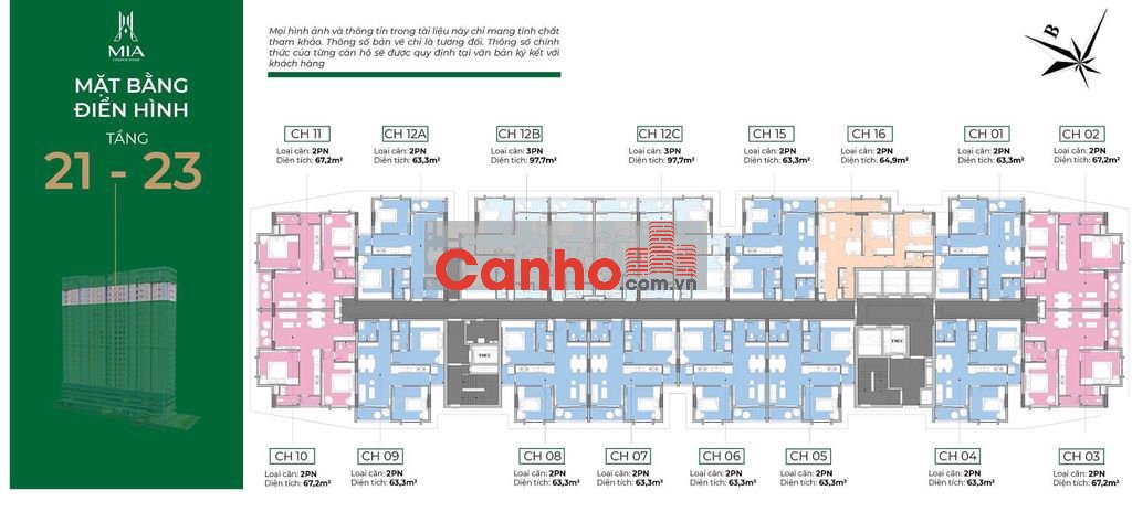 - DT thông thủy 63,3m², gồm 2pn, 2wc, Bếp thông ra lô gia để máy giặt, phơi, phòng khách ra Ban công ngang rộng đặt bàn trà thoải mái