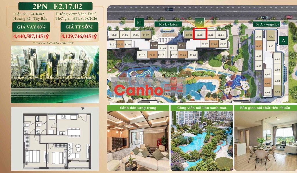 Mua trực tiếp từ Chủ Đầu Tư - Sở hữu ngay căn hộ 2PN - 75m2 đã bàn giao nhà với giá chỉ 4tỷ613 - thanh toán 10% (ký hđmb)