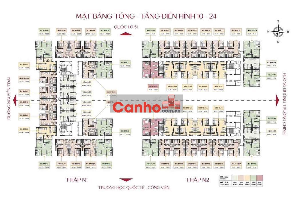 - Căn hộ 2PN + 2WC: 65m2 -72m2