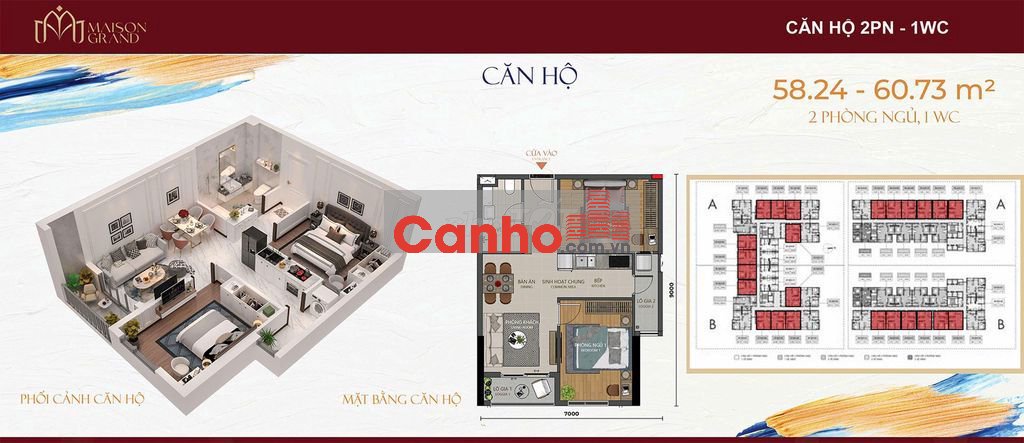 - 2PN + 1WC: 58 - 60m².