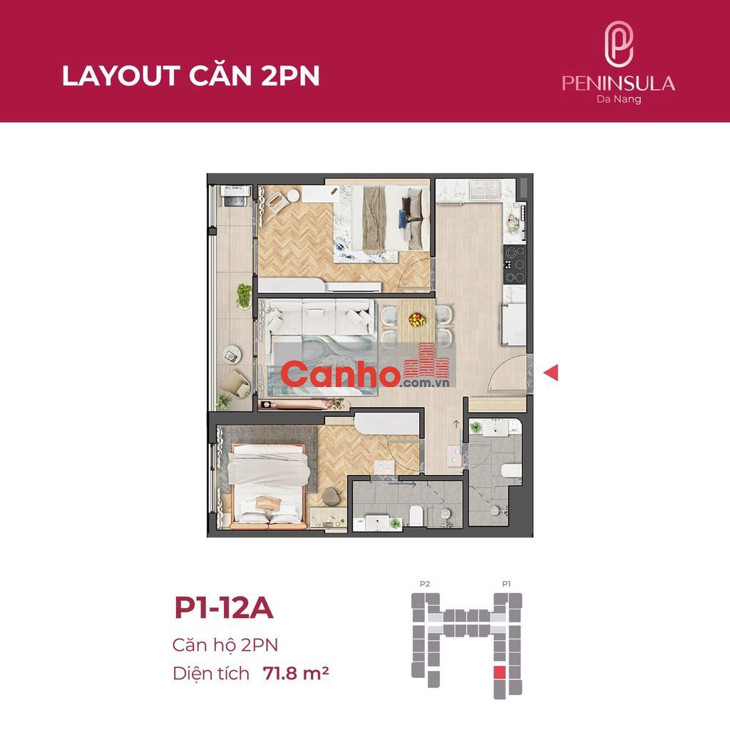 Cần bán căn hộ 2PN 71,8m tầng 17 Peninsula Da Nang, view trực diện sông Hàn, trung tâm Đà Nẵng.