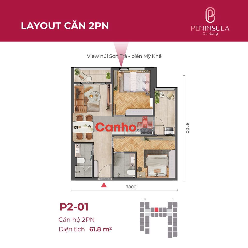 Căn VIP 2PN View Biển + Sông Hàn 62m2 Có Full Nội Thất Giá 63Triệu/m2
