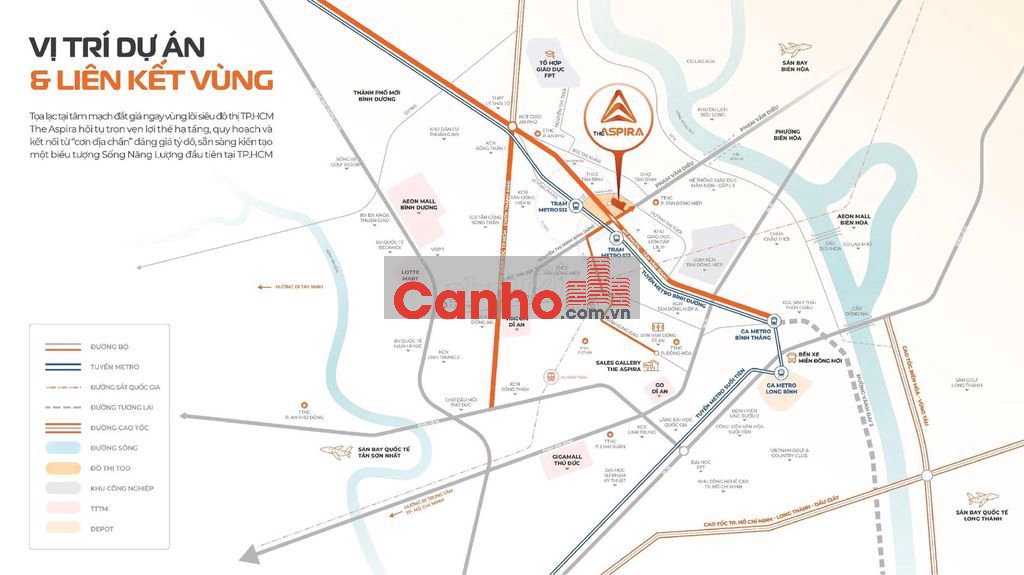 - Bán kính 25 - 30p: Làng Đại Học Thủ Đức, Trung Tâm Tp.HCM, sân bay Tân Sơn Nhất, sân bay Long Thành,...