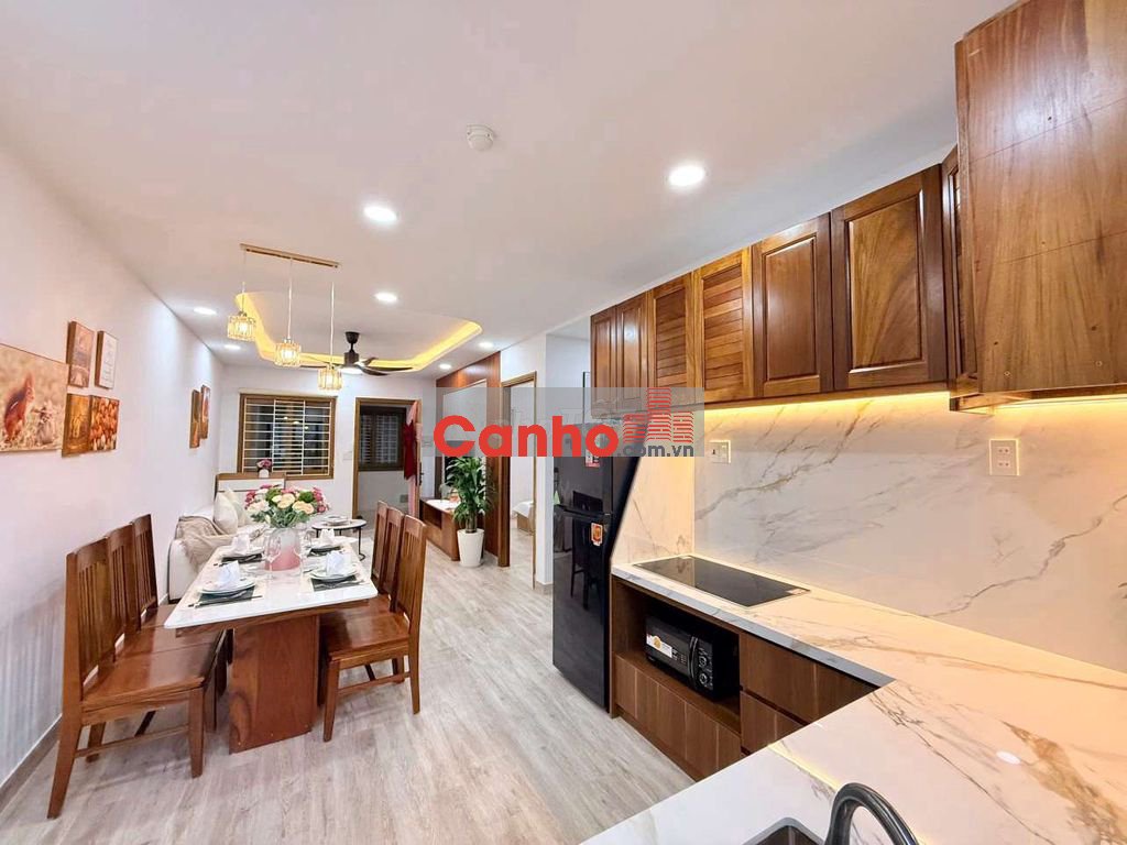 - Diện tích: 58,6m2 2 phòng ngủ, 1 toilet), phòng khách, bếp, chỗ giặt phơi. Trang bị đầy đủ nội thất mới đẹp, lót sàn gỗ xịn xò.