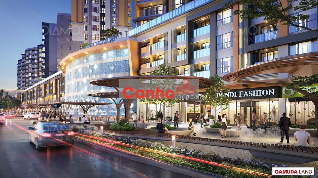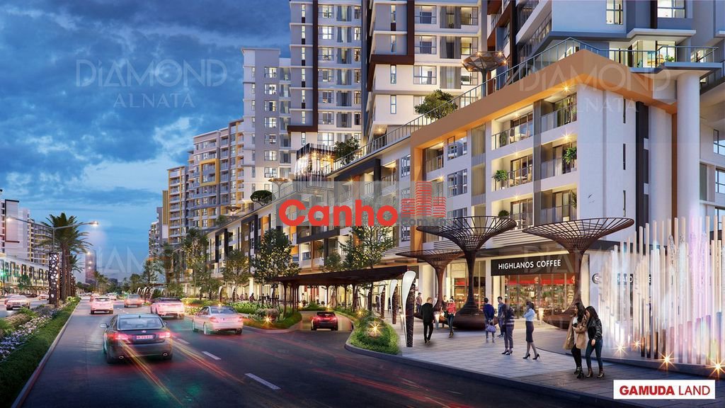 vị trí tầng 2 - 3 - 4 của các tháp Diamond Alnata và Diamond Alnata Plus - view trực diện đại lộ phố đi bộ 62m