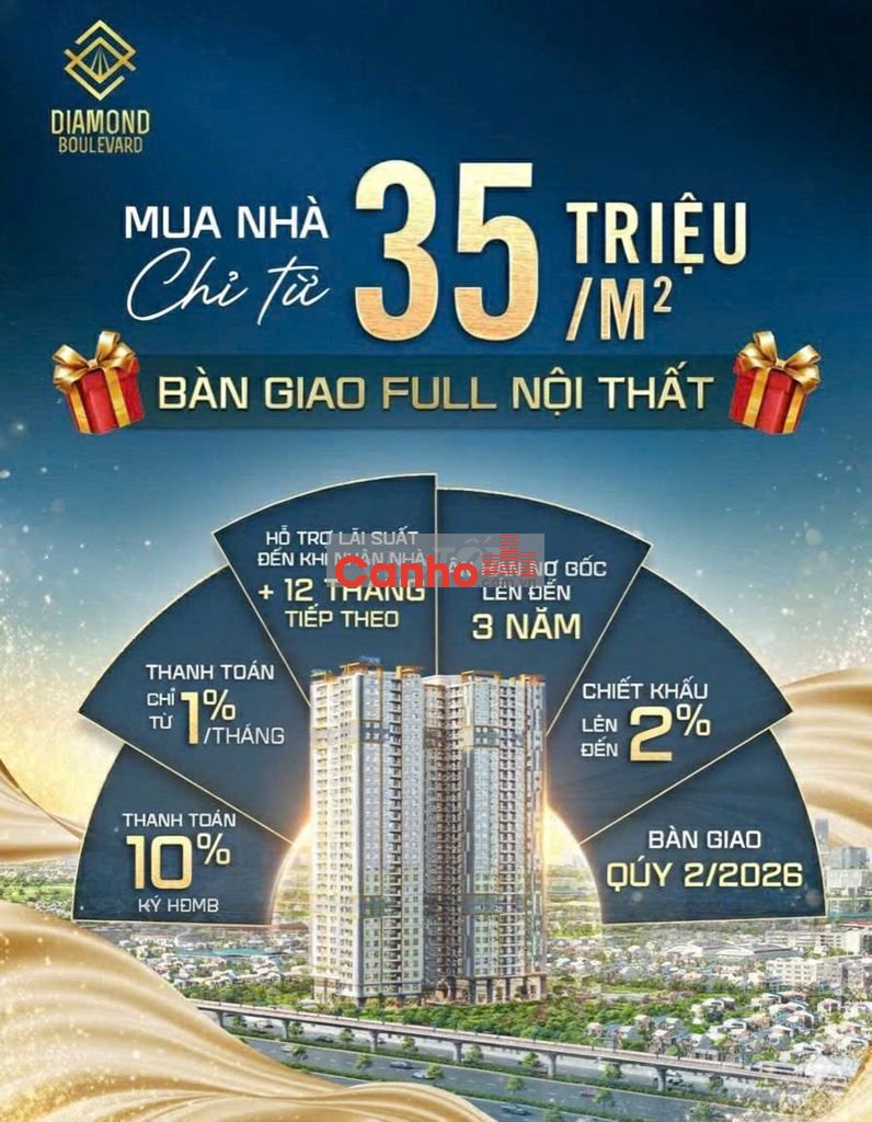 Diamond Boulevard Căn hộ 2PN lý tưởng cho gia đình trẻ.