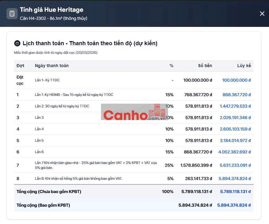 CẦN BÁN CĂN H4-2302 HUE HERITAGE CHIẾT KHẤU 12%
