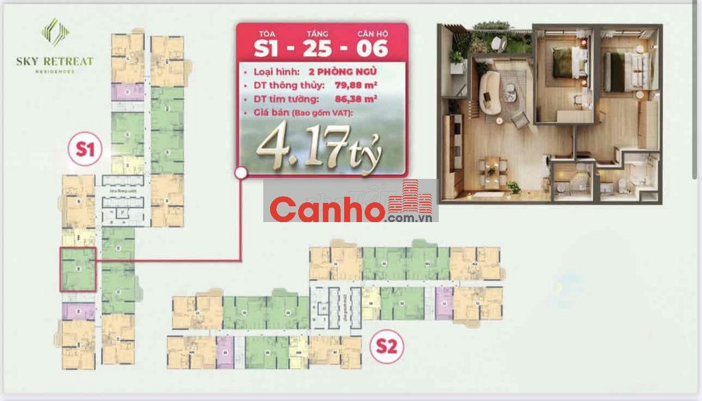 Quý vị đang xem nội dung tin rao "Căn hộ Sky Retreat 86m2 2PN 2WC, View Sông Bến Lức, Giá gốc CĐT". Mọi thông tin, nội dung liên quan tới tin rao này là do người đăng tin đăng tải và chịu trách nhiệm. Canho.com.vn luôn cố gắng để các thông tin được hữu ích nhất cho quý vị tuy nhiên Canho.com.vn không đảm bảo và không chịu trách nhiệm về bất kỳ thông tin, nội dung nào liên quan tới tin rao này.