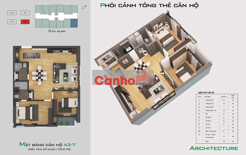 • Diện tích: ~70m²
