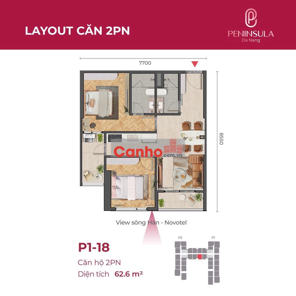 Căn 2PN hoa hậu trực diện sông Hàn, tầng cao