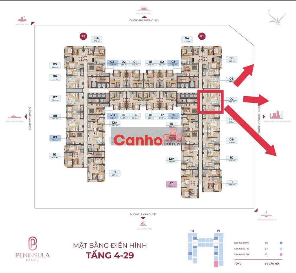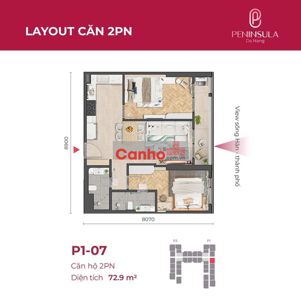🏙 CĂN 2PN VIEW SÔNG HÀN – BAN CÔNG ĐÔNG NAM MÁT MẺ | MÃ CĂN P1-05.07