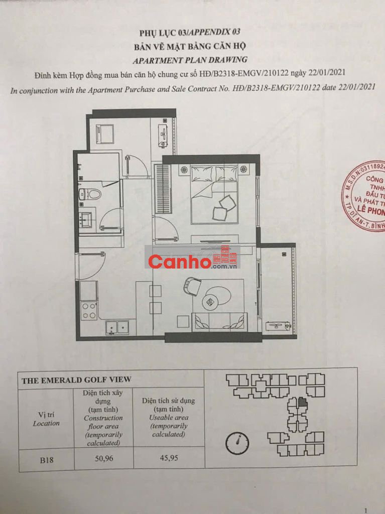 CH THE EMERALD GOLD 51m2 MT QL13 Lái Thiêu Bình Dương