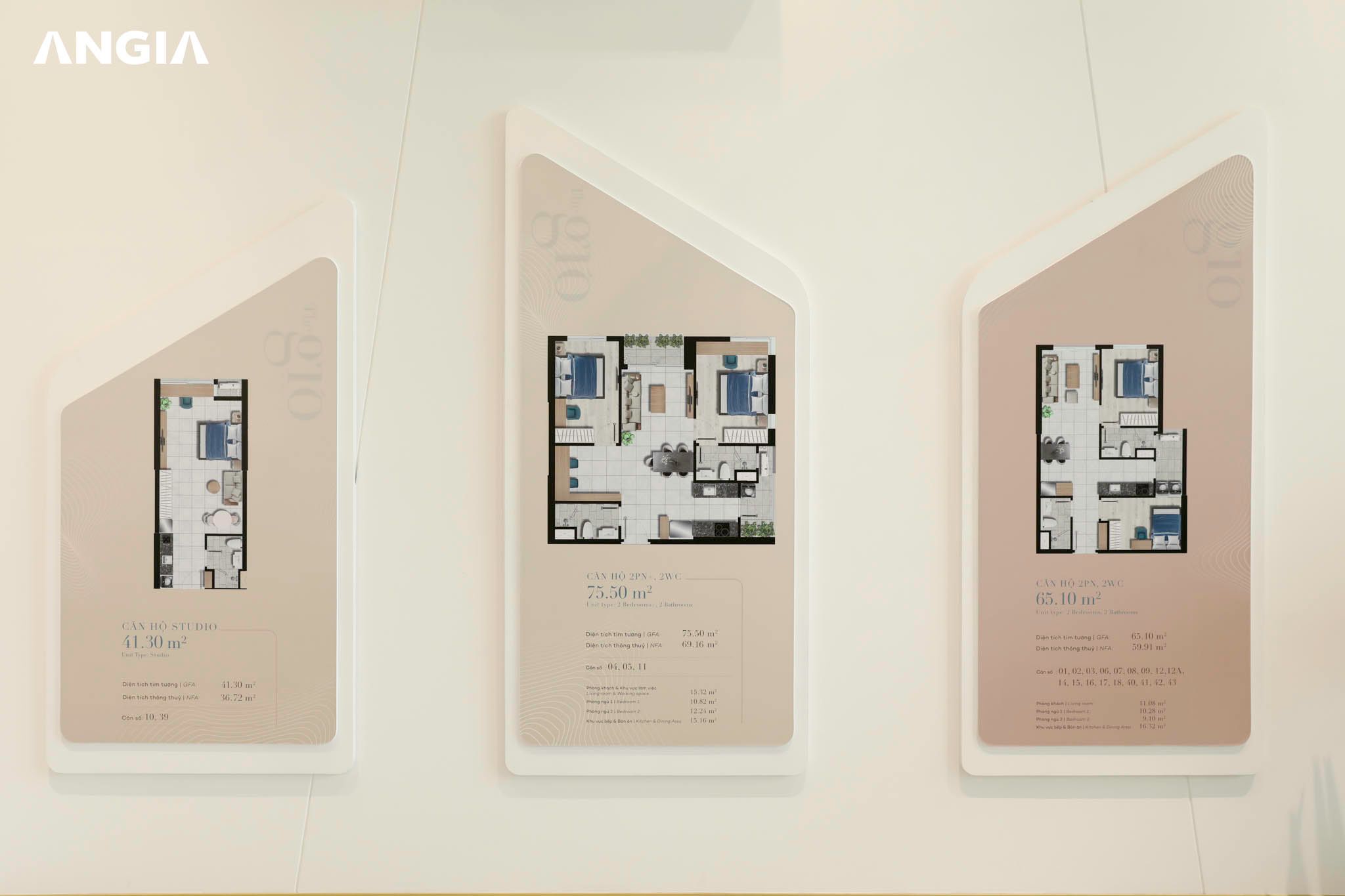 - Diện tích căn đa dạng từ 41m2 - 66m2 tất cả các điện tích đều có ban công và Logia riêng biệt