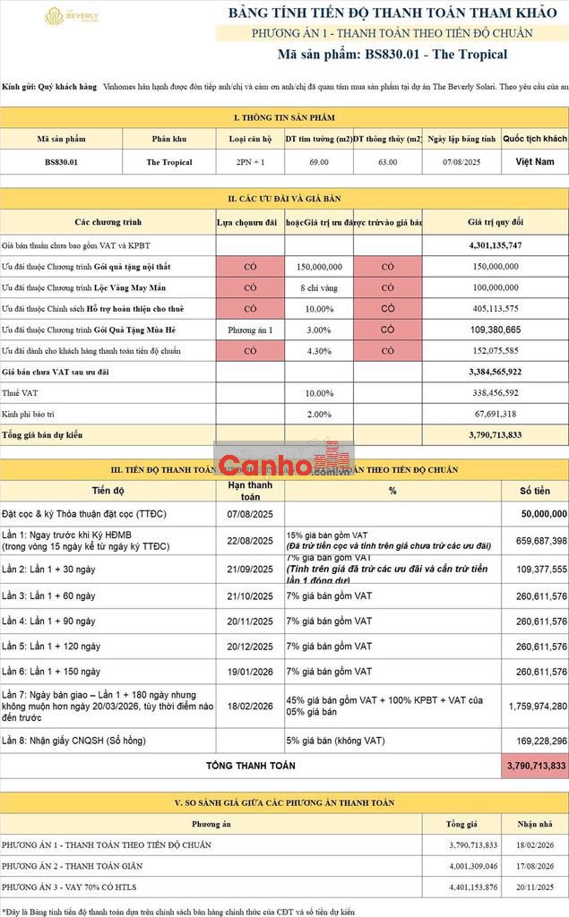 Căn gócTropical,2PN+ 70m2,Giá Gốc 4,3 tỷ sau chiết khấu còn 3,7tỷ.