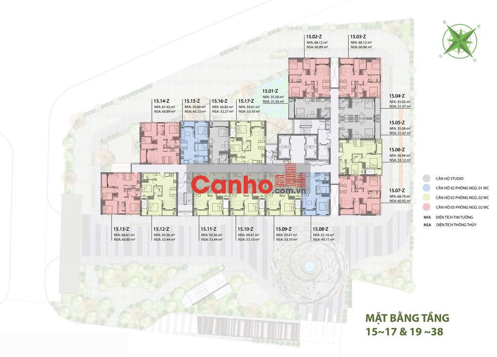 - Căn 3PN2WC: 68m2