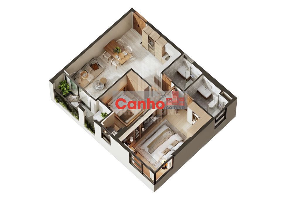 - Thiết kế tối ưu công năng, phong cách Nhật bản, căn hộ rộng gần 76m², gồm 2PN + 2WC.