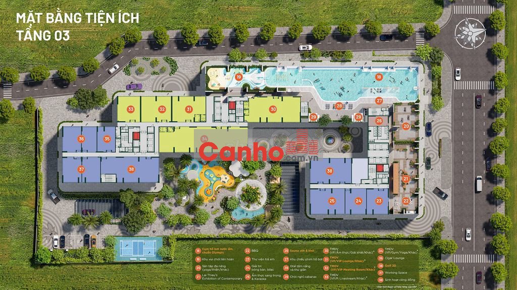 • Hơn 33 tiện ích nội khu: hồ bơi tràn, công viên cây xanh, khu vui chơi trẻ em, gym – yoga, phòng sinh hoạt cộng đồng…