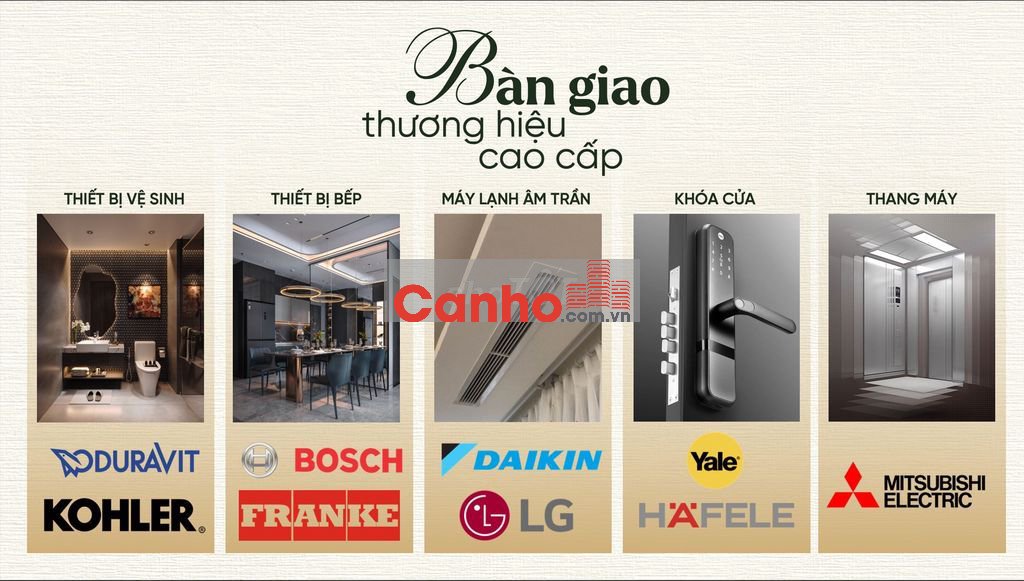 - Các căn hộ được bàn giao cao cấp full thiết bị nhập khẩu, máy lạnh âm trần...