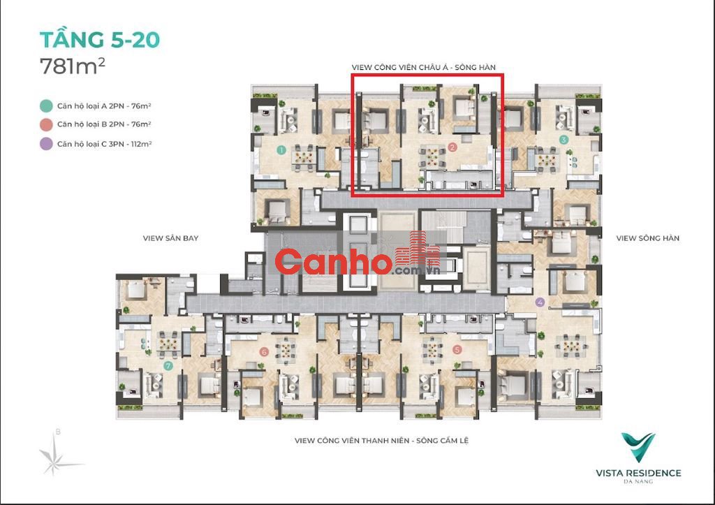 Cặn hộ trung tâm thành phố Đà Nẵng 2 PN, 76m2 dự án Vista Residence