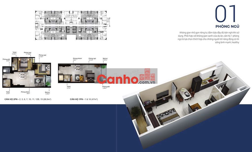 - Diện tích 47m2. thiết kế dạng Studio có ban công rộng thoáng.