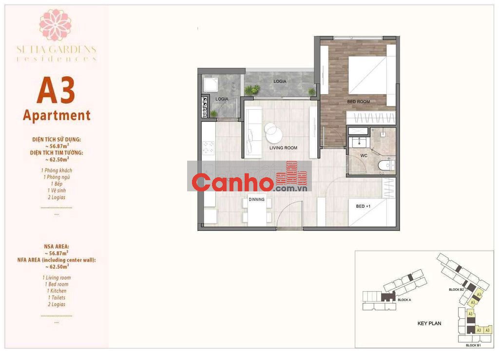 TỔNG SỐ: 852 căn hộ, bao gồm 3 tòa tháp, cao từ 27 đến 28 tầng: