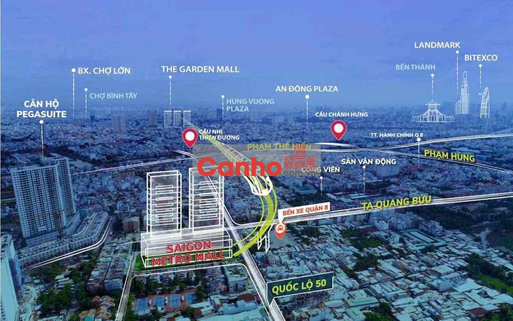 Từ dự án bạn sẽ dễ dàng kết nối với các khu vực trung tâm như Quận 5, Quận 10, Quận 1 và KĐT Phú Mỹ Hưng Quận 7 chỉ khoảng 10 phút. Đặc biệt là quy hoạch tuyến Metro số 5, Ga Metro Monorail số 2 nằm tại bến xe Quận 8 hiện hữu, mở rộng và nâng cấp các tuyến hiện tại như đường Phạm Thế Hiển (lộ giới 30m), đường Tạ Quang Bửu (lộ giới 32m), Quốc lộ 50 (lộ giới 40m)... Sẽ giúp cư dân tại đây thuận lợi di chuyển.