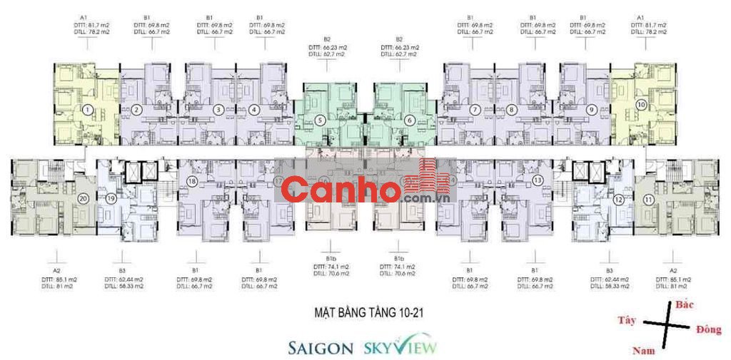 Dự án có 276 căn hộ có diện tích từ 62,4 85,1m², bố trí từ 2 - 3 phòng ngủ, shophouse, Office. Các căn hộ tại đây có thiết kế hiện đại, thông thoáng.