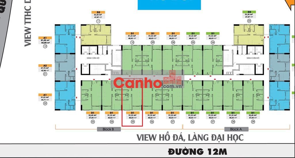 • Diện tích: 51.3m² – gồm 2PN, 2WC