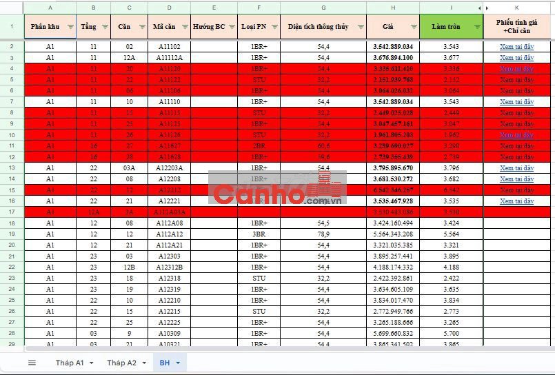 - Căn 3PN: 5.5 tỷ - 6 tỷ/căn
