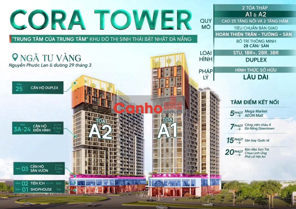 - Sở hữu vị trí kim cương giữa trung tâm quy hoạch hoàn chỉnh, Sun Cora Tower kết nối nhanh chóng đến chuỗi tiện ích ngoại khu hiện hữu: Sân vận động Hòa Xuân, Cầu Hòa Xuân, Mega Market, Lotte Mart, hệ thống ngân hàng, trường học, trung tâm hành chính và chỉ vài phút đến trung tâm Hải Châu.
