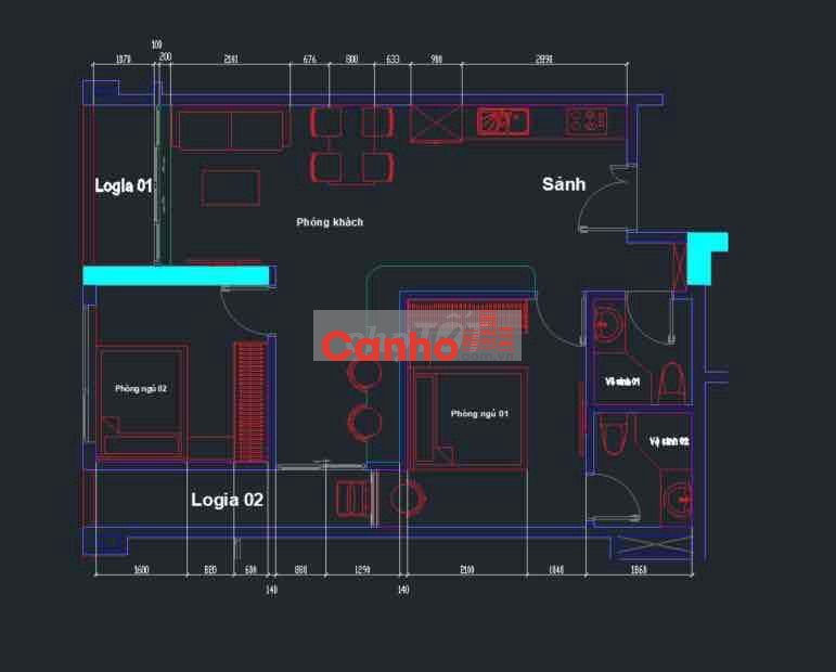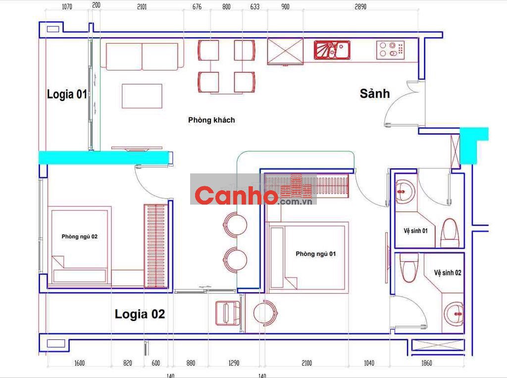 * Căn hộ 2pn 2 logia, có thể thiết kế thành 2n+1 như ảnh