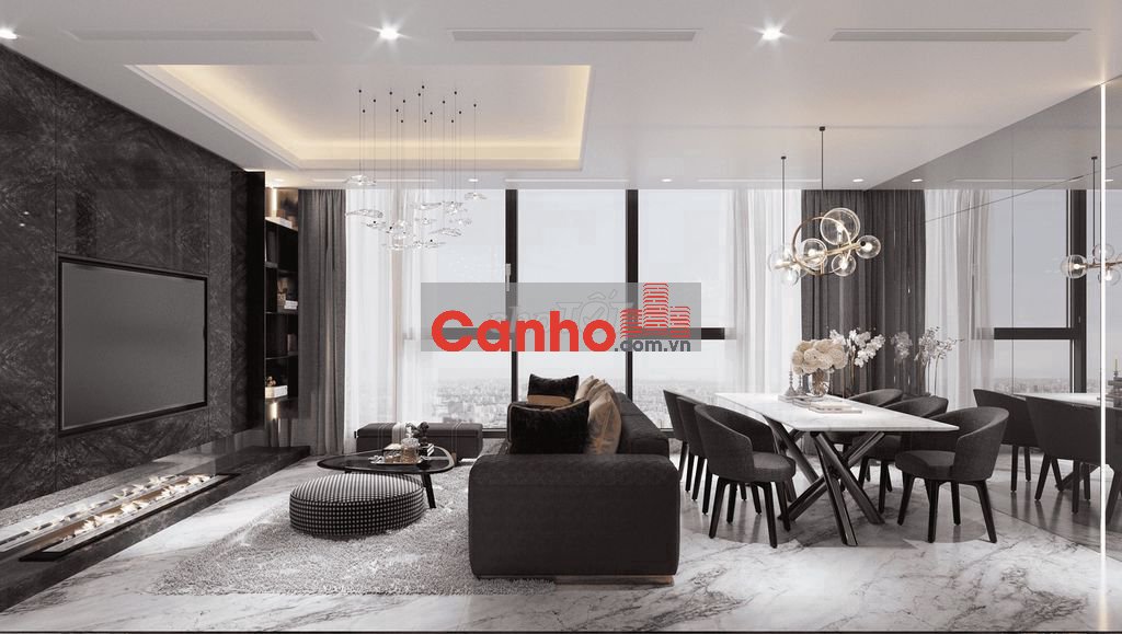 Bố cục: phòng khách, bàn ăn và bếp được thiết kế liên thông không gian mở, giúp không gian sinh hoạt chung rộng rãi và thoáng.